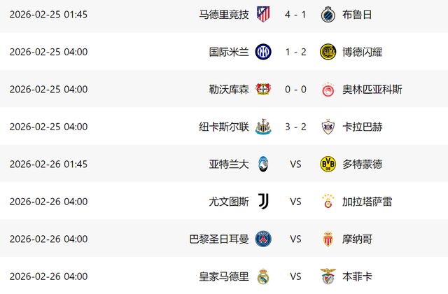 这一夜,除了国米之外,纽卡斯尔、勒沃库森和马竞3支强队,都顺利过关晋级16强。其中马竞在主场4-1大胜布鲁日,并以7-4的总比分淘汰对手,而纽卡斯尔则在主场3-2双杀卡拉巴赫,2回合总比分9-3晋级。随着纽卡斯尔淘汰对手,本赛季欧冠16强,足足有6支英超球队,他们的强势可见一斑。虽然勒沃库森在主场0-0战平奥林匹亚科斯,但是凭借首回合客场2-0的优势,这家德甲劲旅还是顺利晋级。